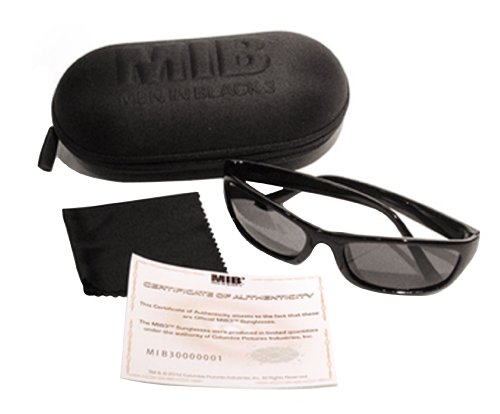 Officially licensed Men In Black 3 Sunglasses feature TAC polarized lenses with UV400 protection, lightweight glossy black frame with gunmetal MIB3 temple plaques, and include an MIB3 embossed black zippered case, black cleaning cloth, and individually numbered certificate of authenticity. RelateItems- Men In Black 3 Neuralyzer, Silver/Black, One Size